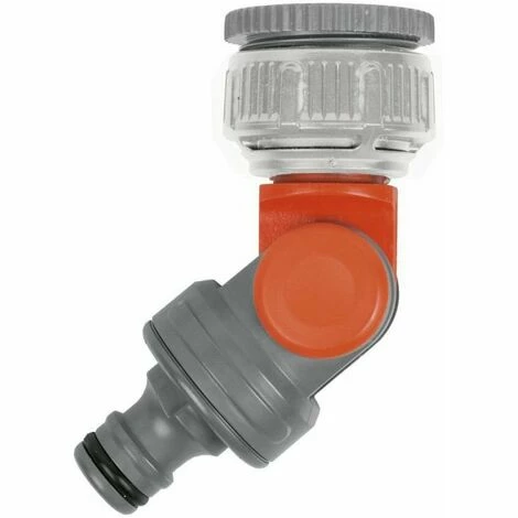 Der GARDENA System-Anschluss an den Wasserhahn. Verhindert Knicken und Verdrehen des Schlauches am Wasserhahn mittels dreh- und schwenkbarem Anschlussstück. Ideal auch für den Einsatz an Schlauchwagen. Angebotsform: lose.
