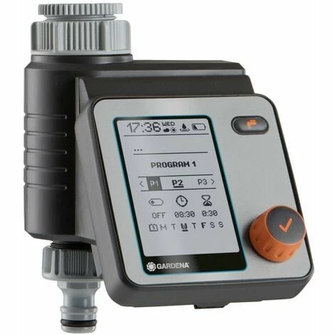 Mit der Gardena Bewässerungssteuerung Master lässt sich die Bewässerung besonders flexibel und individuell planen. Bis zu sechs unterschiedliche und unabhängige Zeitpläne können erstellt werden. Einstellbar sind jeweils Start, Dauer und Wochentage der Bewässerung. Die Steuerung ist batteriebetrieben, wird direkt an den Wasserhahn angeschlossen und lässt sich leicht durch nur einen Dreh- und Drückschalter zur Auswahl der Daten und zur Bestätigung bedienen. Ein gut lesbares, vollgraphisches LC-Display zeigt alle Einstellungen auf einen Blick an. Das Menü ist in 10 Sprachen wählbar. Die wetterbeständige Bedieneinheit ist abnehmbar. Wenn sich das Wetter ändert, lässt sich die Bewässerungsdauer zentral in 10%- Schritten reduzieren oder die Bewässerung bei einer Schlechtwetterphase für 1 bis 7 Tage pausieren. ”Water Now” Funktion: Soll die Bewässerung einmal sofort gestartet werden, lässt sich diese manuell aktivieren, ohne das Gerät vom Wasserhahn zu entfernen oder Einstellungen zu