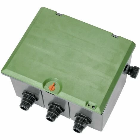 In der Gardena Ventilbox V3 können drei Bewässerungsventile 24 V (Art. -Nr. 1278-20) oder drei Bewässerungsventile 9 V (Art. -Nr. 1251-20) unterirdisch eingebaut werden. Die Wasserzufuhr kann von drei Seiten erfolgen. Die Teleskop-Schraubverbindung sorgt dabei für eine einfache Ventilmontage und -demontage. Die Kabelanschlussbox ist wassergeschützt und sorgt für eine einfache und übersichtliche 24 V-Kabelverbindung. Über die zentrale Entwässerungskappe kann die Wasserzuleitung vor Frosteinbruch entleert werden.mit 1 Außengewindefür bis zu 3 Bewässerungsventile 9 V oder 24 VDeckel kindersicher verschließbarTeleskop-Schraubverbindung für einfache Ventilmontage/-demontagewassergeschützte Kabelanschlussbox für einfache, übersichtliche 24 V-Kabelverbindungzentrale Entwässerungskappe zur Entleerung der Zuleitung vor Frosteinbruch